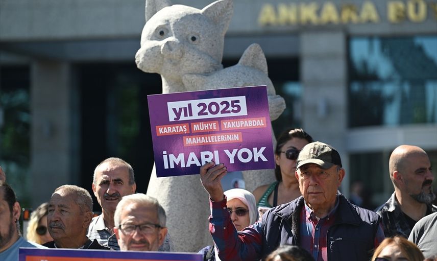 Çankaya ilçesine bağlı Karataş, Mühye ve Yakupabdal mahallelerinde ikamet edenlerden oluşan bir grup, imar sorunlarının çözümü talebiyle Ankara Büyükşehir Belediyesi (ABB) önünde eylem yaptı. ABB önünde bir araya gelen grup, "İmar hakkımız engellenemez", "1 yıl içinde tapumuzu istiyoruz", "67 yıl imar bekledik, çoğumuz bekleyemedi" yazan dövizler taşıdı.
