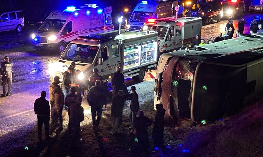 Çankırı'da işçileri taşıyan bir servis otobüsünün devrilmesi sonucu 23 kişi yaralandı.
