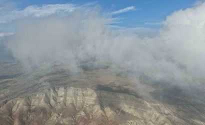 Çankırı'da kent merkezinin üzerini kaplayan sis bulutu, güneşin doğuşuyla birlikte havadan görüntülendi. Görüntüler, sis tabakasının şehir üzerinde geniş bir beyaz örtü oluşturduğunu gösteriyor.
