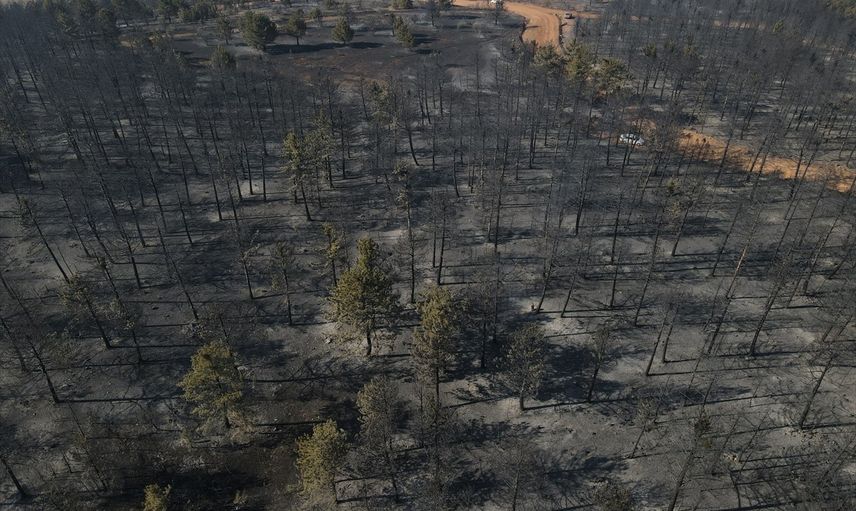 Çankırı'nın Ilgaz ilçesinde dün çıkan orman yangını kontrol altına alındı. Yangından zarar gören alan havadan görüntülendi.