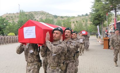Çankırı'da trafik kazasında yaşamını yitiren özel harekat kursiyerleri polis memuru Aybars Musa Ergin ve İsmail Sefa Gülel için Çankırı Şehit Seyit Saraç Polis Özel Harekat Eğitim Merkezi Müdürlüğü'nde tören düzenlendi.