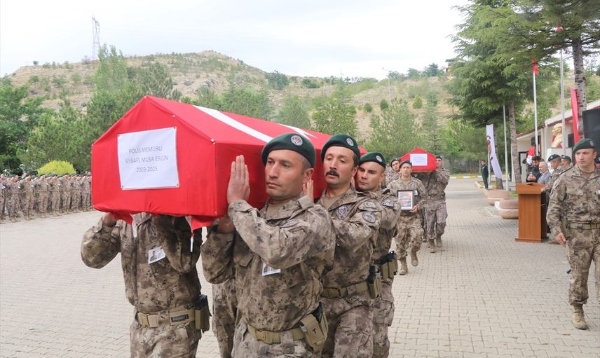 Törende, saygı duruşunun ardından hayatını kaybeden polis memurlarının öz geçmişleri okundu. Kur'an-ı Kerim tilavetinin ardından dua edildi. Ergin ve Gülel’in Türk bayrağına sarılı tabutları, tören mangasının omuzlarında cenaze aracına taşındı ve toprağa verilmek üzere memleketlerine gönderildi.