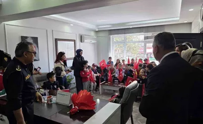Samsun'un Çarşamba ilçesinde, 6-12 Nisan Polis Haftası etkinlikleri kapsamında Mehmet Akif Ersoy Okulu Anaokulu öğrencileri, öğretmenleri eşliğinde İlçe Emniyet Müdürlüğü'nü ziyaret etti.