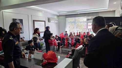 Samsun Çarşamba'da Mehmet Akif Ersoy Okulu anaokulu öğrencileri, 6-12 Nisan Polis Haftası kapsamında İlçe Emniyet Müdürlüğü'nü ziyaret ederek polisleri kutladı ve ikramlar aldı.