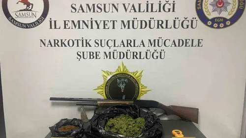 Samsun'un Çarşamba ilçesinde düzenlenen operasyonda 448,64 g esrar, 94,50 g sentetik kannabinoid, ruhsatsız tüfek ve hassas terazi ele geçirildi; H.C. hakkında adli işlem başlatıldı.
