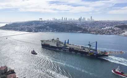 Türkiye'nin Karadeniz'de keşfettiği doğal gaz için boru döşeme görevindeki "Castorone" gemisi İstanbul Boğazı'ndan geçti.