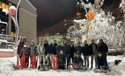 Çatak’ta öğrenciler kar tatilini kızak keyfine dönüştürdü