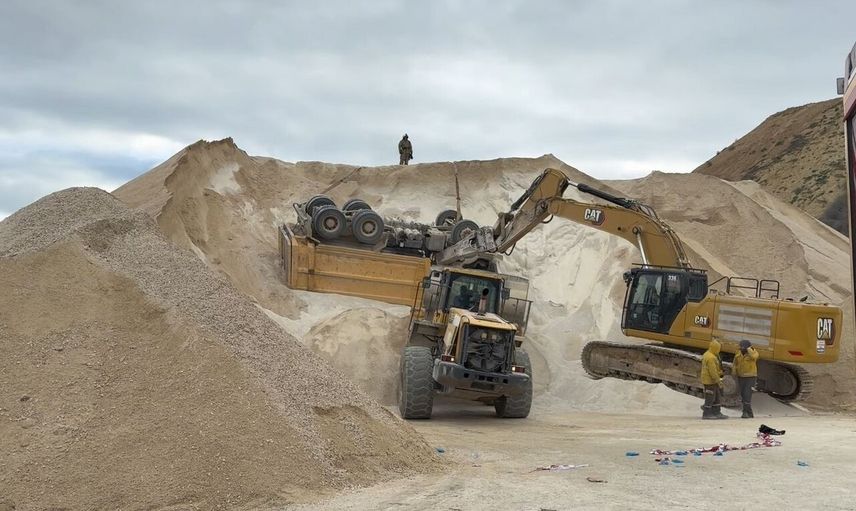 Çatalca Ferhatpaşa Mahallesi'ndeki bir taş ocağında meydana gelen kazada, kum boşaltımı sırasında devrilen kamyonun damperi arasında sıkışan sürücü Şaban Saha (64) olay yerinde hayatını kaybetti.