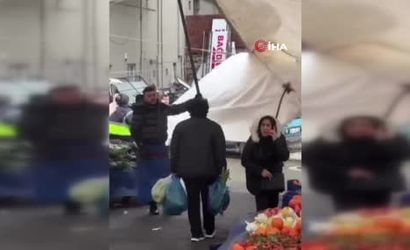 Çatalca semt pazarında fırtına: Pazarcıların brandayla mücadelesi cep telefonu kamerasına yansıdı