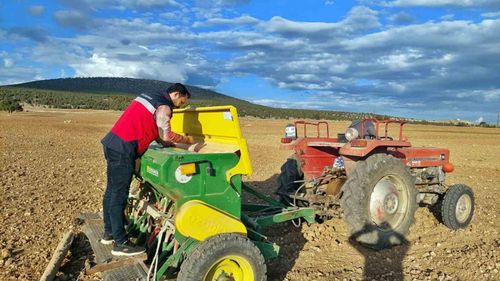 Kütahya'nın Çavdarhisar ilçesinde İlçe Tarım ve Orman Müdürlüğü tarafından dağıtılan buğday ve tritikale tohumlarının demonstrasyon amaçlı ekimi gerçekleştirildi.