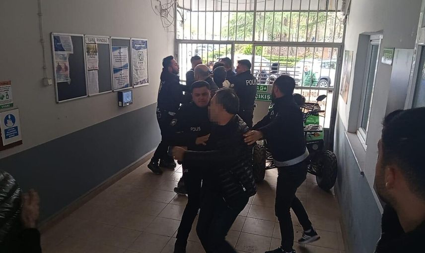 Emniyet ekipleri müdahale ederek, polise saldırdığı belirtilen 2 kişiyi gözaltına aldı ve karakola götürdü.