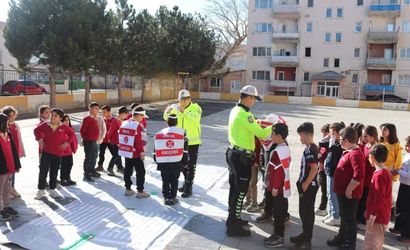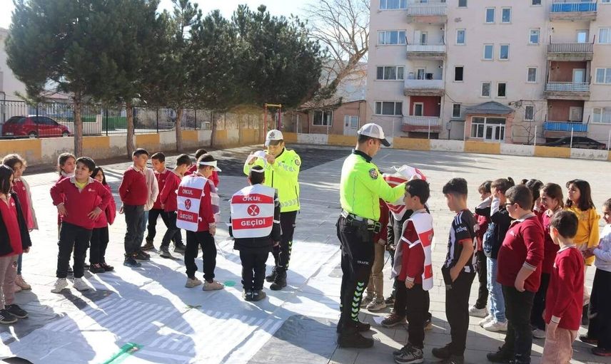 Erzincan İl Emniyet Müdürlüğü Çayırlı İlçe Emniyet Amirliği ekipleri, 29 Ekim İlkokulu öğrencilerine yönelik Trafik Güvenliği ve Yaya Önceliği konularında bilgilendirme faaliyeti gerçekleştirdi.