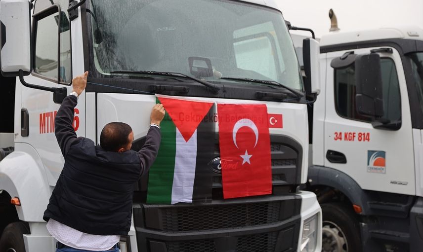 Çekmeköy Belediyesi, İsrail'in Gazze'de uyguladığı soykırıma dikkati çekmek ve Filistin halkına desteğini göstermek için hizmet araçlarına Filistin ile Türk bayrakları astı.