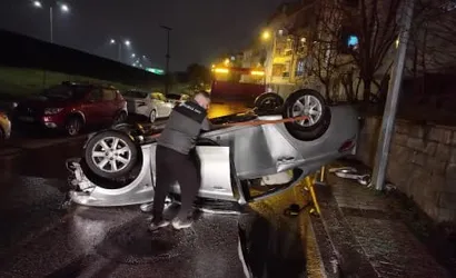Çekmeköy Çamlık'ta kontrolden çıkan otomobil takla attı: 3 kişi yaralandı