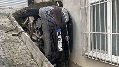 Üsküdar Çengelköy'de vitesi boşta kalan 06 RFG 15 plakalı hafif ticari araç yokuş aşağı kayarak bir evin bahçesine düştü; yaralanma yok, araçta maddi hasar oluştu.