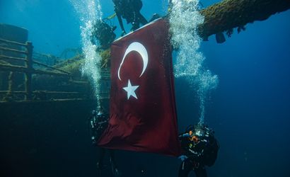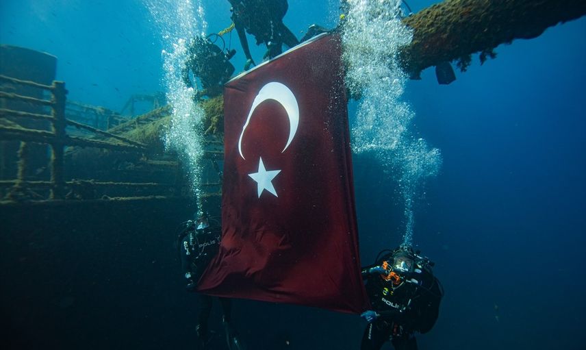 Cumhuriyet'in 102. yılı dolayısıyla 5 kişilik dalış ekibi, Çeşme açıklarındaki batığa özel dalış gerçekleştirdi. Dalgıçlar suyun altında Türk bayrağı açarak bayram coşkusunu denizin derinliklerine taşıdı. Haberi Anadolu Ajansı geçti.