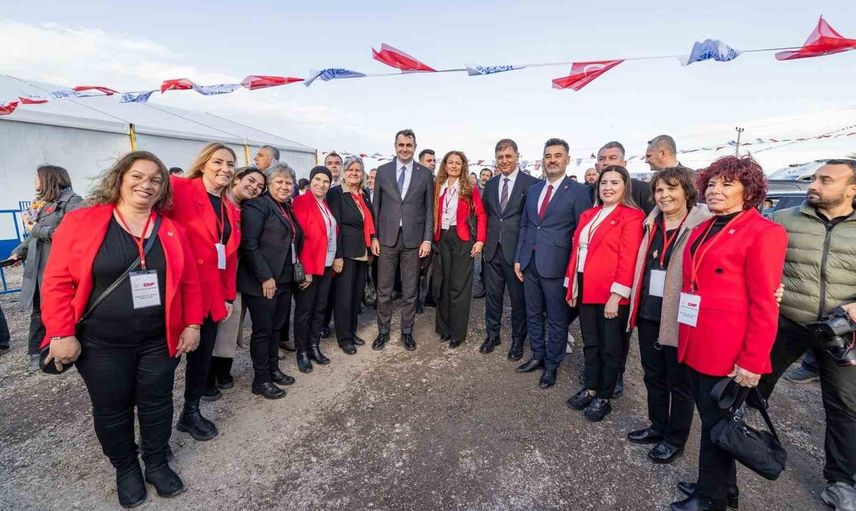 İzmir Büyükşehir Belediye Başkanı Cemil Tugay ile CHP Genel Başkanı Özgür Özel, Çeşme Belediye Başkanı Lal Denizli'nin öncülüğündeki Herkes İçin Adil Nitelikli Ev Modeli (Hanem Çeşme) projesinin temel atma törenine katıldı.