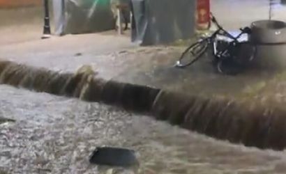 İZMİR'İN ÇEŞME İLÇESİNDE GECE SAATLERİNDE ETKİLİ OLAN KUVVETLİ SAĞANAK NEDENİYLE CADDE VE SOKAKLAR GÖLE DÖNDÜ, BAZI EV VE İŞ YERLERİNİ SU BASTI. DENİZDEN ÇEKİLEN BİR VİDEODA İSE ADETA DENİZLE KARANIN BİRLEŞTİĞİ GÖRÜLDÜ.