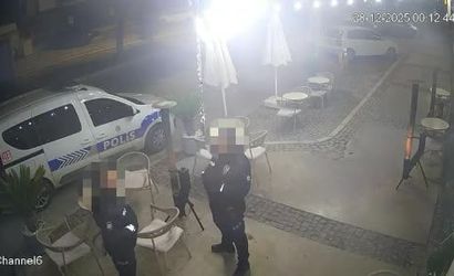 Kaza anı, çevredeki bir iş yerinin güvenlik kamerasına saniye saniye yansıdı. Görüntülerde siyah otomobilin polis aracına çarpması, araçların savrulması ve kafeteryanın dış mekan düzeninin zarar görmesi yer alıyor. Sürücünün kimliği ve plakası henüz belirlenemedi.