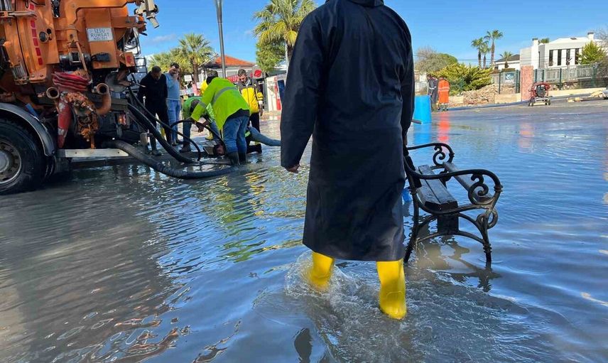 İzmir'in Çeşme ilçesinde gece boyunca etkili olan sağanak yağış, sabah saatlerinde artarak ilçe merkezinde su baskınlarına sebep oldu. İZSU Genel Müdürlüğü'nün 09.30 itibarıyla paylaştığı bilgiye göre, lodos etkisiyle deniz seviyesinin anlık yükselmesi ve yağmur suyu tahliye hatlarındaki tıkanmalar nedeniyle kıyı bandında ve tahliye sistemlerinde geri basmalar oluştu. Musalla Deresi ile marinaya açılan dere kesiminde su seviyesinin kritik düzeye ulaştığı bildirildi.