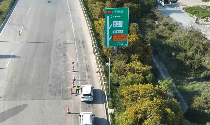 Çeşme gişelerinde dron destekli trafik denetimi sürüyor