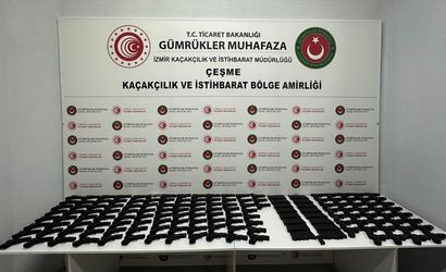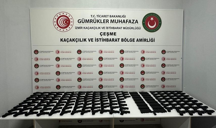 İzmir'in Çeşme Limanı'nda, İtalya'nın Trieste Limanı'na gitmek üzere gelen bir tırda gerçekleştirilen aramada 138 tabanca ve 135 şarjör ele geçirildi. Olay, 12 Mart'ta meydana geldi.