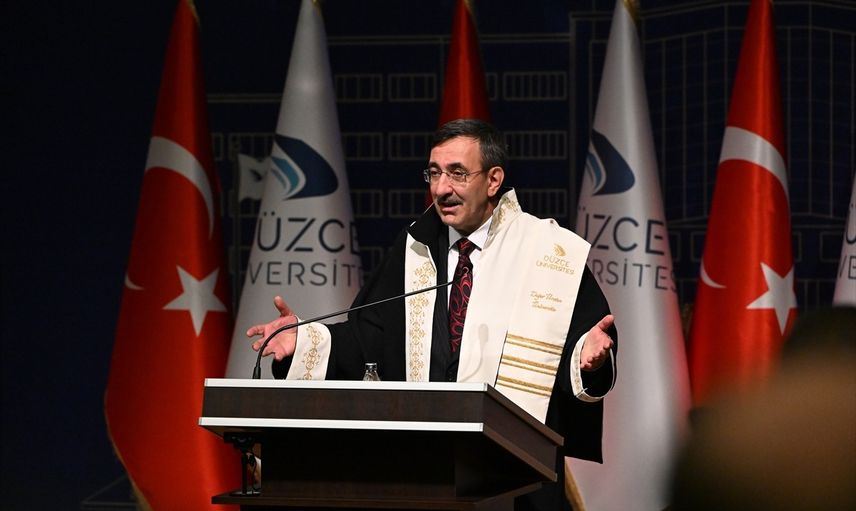 Düzce Üniversitesi 2025-2026 Akademik Yılı açılış programında Cumhurbaşkanı Yardımcısı Cevdet Yılmaz fahri profesörlük unvanı ile onurlandırıldı. Rektör Prof. Dr. Nedim Sözbir tarafından cübbe giydirilen Yılmaz, unvanı gururla taşıyacağını belirtti ve Cumhurbaşkanı Recep Tayyip Erdoğan'ın selamlarını iletti.