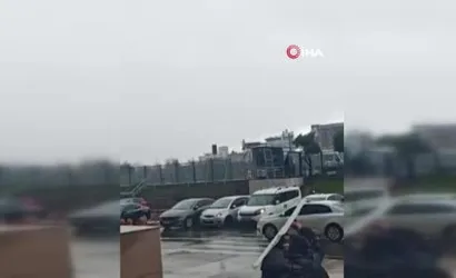 İSTANBUL ADALET SARAYI'NDAN ÇIKAN ANNE VE BEBEĞİ, YAĞMUR VE FIRTINA NEDENİYLE ZOR ANLAR YAŞAYINCA YARDIMLARINA O SIRADA NÖBET TUTAN ÇEVİK KUVVET POLİSİ KOŞTU. POLİSİN ANNE VE BEBEĞİNİN ETRAFINDA KALKAN OLDUĞU ANLAR KAMERAYA YANSIDI.