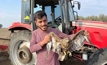 ADANA’NIN CEYHAN İLÇESİNDE YER FISTIĞI HASADI YAPAN BİR ÇİFTÇİ, TARLADA UÇAMAYAN BİR ŞAHİN GÖRÜNCE HASADI BIRAKIP ONUN YARDIMINA KOŞTU.