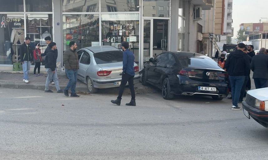 Şanlıurfa’nın Ceylanpınar ilçesine bağlı 15 Temmuz Mahallesinde meydana gelen kazada, çarpışmanın etkisiyle kontrolden çıkan iki otomobil, bir telefon tamir ve satış işyerinin önünde bulunan merdiven basamakları ile vitrine çarparak durdu.