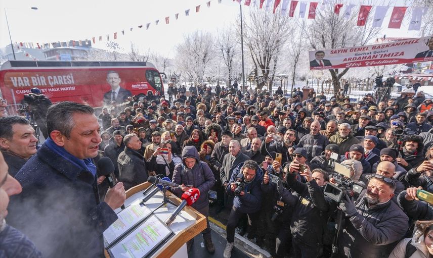 CHP Genel Başkanı Özgür Özel, çeşitli temaslarda bulunmak üzere geldiği Ardahan'da, Ardahan Belediyesinin önünde vatandaşlara hitap etti.