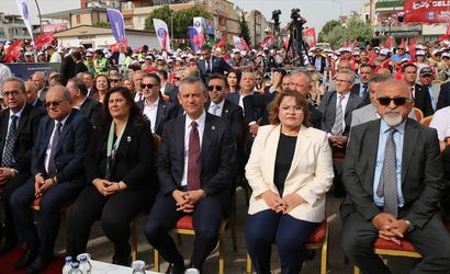 CHP Genel Başkanı Özgür Özel, Didim Belediyesinin Cumhuriyet Mahallesi'ndeki Ayşenur Ezgi Eygi Parkı ve Toplu Açılışı Töreni'ne katılarak konuşma yaptı.