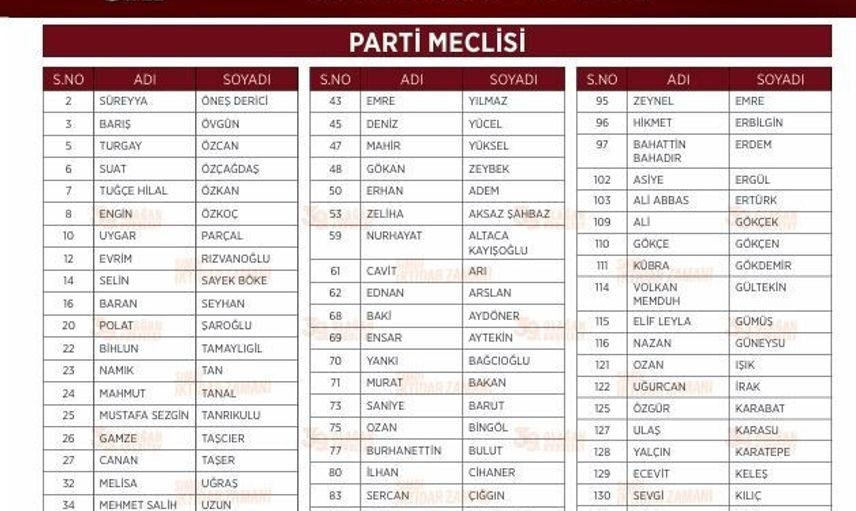 Cumhuriyet Halk Partisi (CHP) 39. Olağan Kurultayı’nın son gününde, Genel Başkan Özgür Özel tarafından hazırlanan anahtar liste açıklandı. Listeler, 80 kişilik Parti Meclisi (PM), 15 kişilik Yüksek Disiplin Kurulu (YDK) ve Bilim Kültür Sanat Platformu üyelerini kapsıyor.