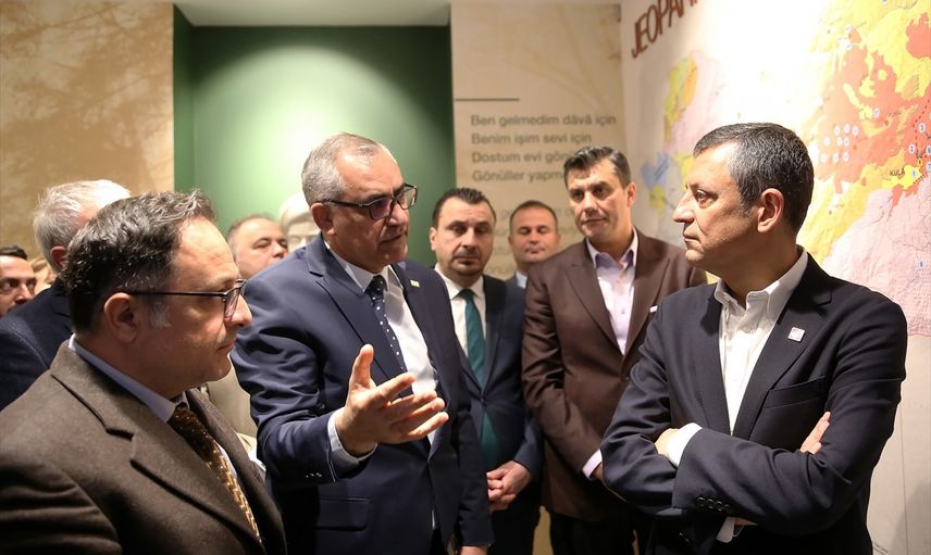 CHP Genel Başkanı Özgür Özel (ortada), Manisa'nın Kula ilçesinde Kula-Salihli UNESCO Global Jeoparkı Ziyaretçi Merkezi'nin açılışına katıldı. Özel, törende bir konuşma yaptı.