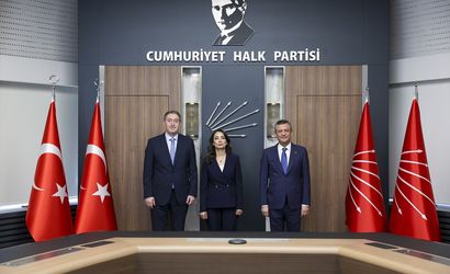 CHP Genel Başkanı Özgür Özel, DEM Parti Eş Genel Başkanları Tülay Hatimoğulları ve Tuncer Bakırhan ile CHP Genel Merkezi'nde bir araya geldi.