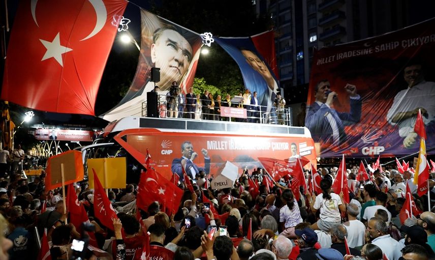 CHP Genel Başkanı Özgür Özel, partisince Tokat Gazi Osman Paşa Bulvarı'nda düzenlenen "Millet İradesine Sahip Çıkıyor" mitinginde otobüsün üzerinden halka hitap etti.