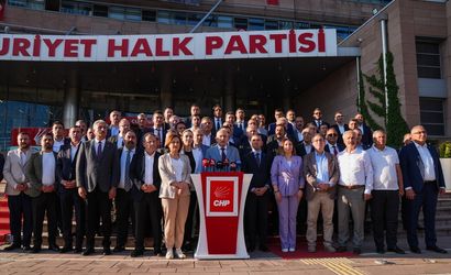 CHP'nin 81 il başkanı, CHP Genel Merkezi önünde ortak basın açıklaması yaptı. İl başkanları adına ortak açıklamayı CHP Ankara İl Başkanı Ümit Erkol, okudu.
