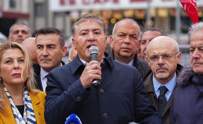 CHP Grup Başkanvekili Murat Emir, Giresun Milletvekili Elvan Işık Gezmiş, Çanakkale Milletvekili İsmet Güneşhan, meclis üyeleri ve partililer Cumhuriyet Meydanı'nda bir araya geldi.