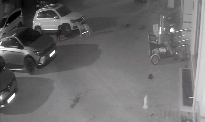 Olay anına ait güvenlik kamerası kayıtları, köpeklerin aracın yanına gelerek plastik aksamları ısırıp parçaladığını açık şekilde gösteriyor. Kayıtlarda köpeklerin parçaları söküp bir süre araç etrafında kaldıktan sonra uzaklaştıkları görülüyor.