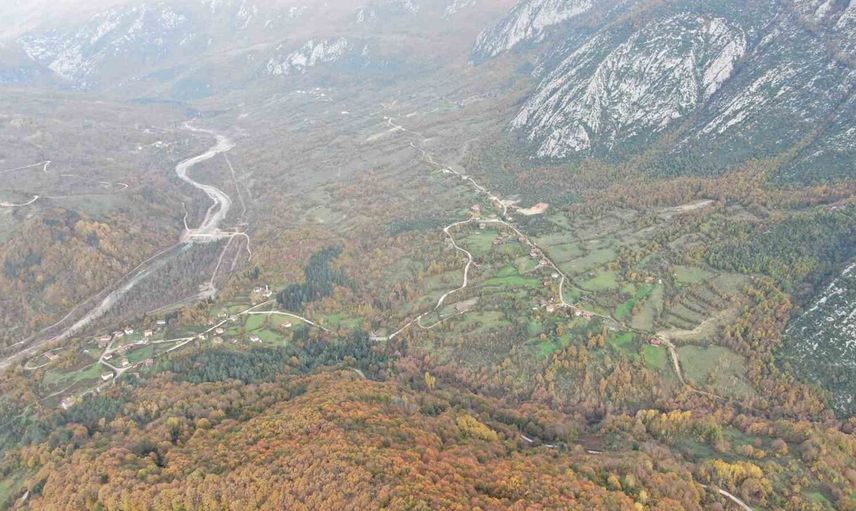 Cide Şenköy'de sonbahar manzarası: Sarıçam evleri ve vadiler