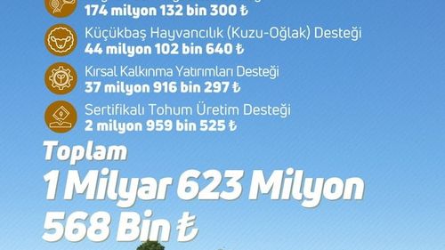 Çiftçilere 1 milyar 623 milyon lira tarımsal destek ödemesi yapıldı