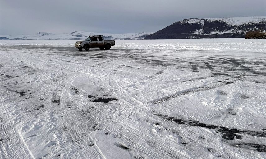 Buzla kaplı göl üzerinde gezinti yapan Gencay Koçak, ilk kez araç kullanarak buzlu alanı denedi. Koçak, çevredeki diğer ziyaretçilerin ilgiyle izlediği bu sürüş deneyiminde, buzun kalınlığı ve sertliğinin güvenli olduğunu belirtti.