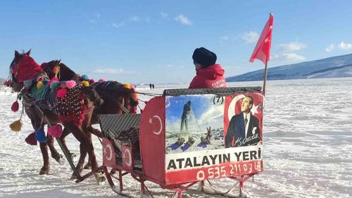 Çıldır Gölü'nün yüzeyi soğuklarla tamamen dondu; atlı kızak seferleri, sıcaklıkların sıfırın altında 20 dereceye kadar düşmesiyle yeniden başladı.