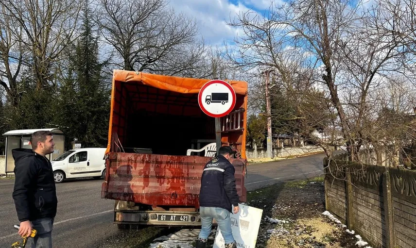 Çilimli'de trafik güvenliğini güçlendirme çalışmaları: Trafik tabelaları yenileniyor