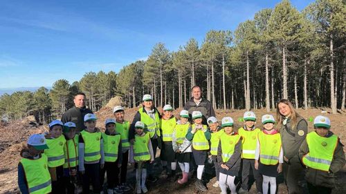 Aydın'ın Çine ilçesinde öğrenciler, 'Yeşil Vatan - Benim Okulum Geleceğe Çare' projesi kapsamında orman faaliyetleri hakkında bilgilendirildi ve fidan dikimi yaptı.