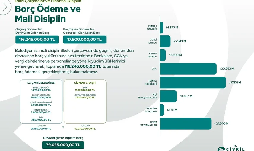 Başkan Dere'nin paylaştığı bu mali tablo, borç yönetimi, kredi kullanım öncelikleri ve kurumsal düzenlemeler açısından belediyenin izlediği yaklaşımı özetliyor.