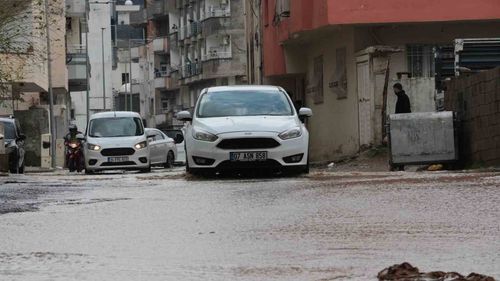 Cizre'de aniden bastıran sağanak yağış, rögar tıkanmaları nedeniyle cadde ve sokakları suyla doldurdu; belediye ekipleri müdahale ediyor.