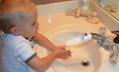 - Şampuan şişesini musluğun hemen altına yerleştirin. Şişe, suyun dökülmesini sağlamalı ve çocuğunuzun ellerini yıkarken veya banyo yaparken musluğa rahatça ulaşmasına yardımcı olmalıdır.