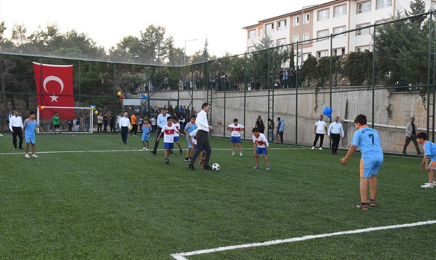 Yeşilyurt Mahallesi'nde, çocukların istekleri üzerine talimatıyla yaptırılan halı sahada incelemelerde bulunan Bakan Kurum, maç öncesi çocukların mutluluğunu önemseyerek onlarla birlikte oyuna katıldı.