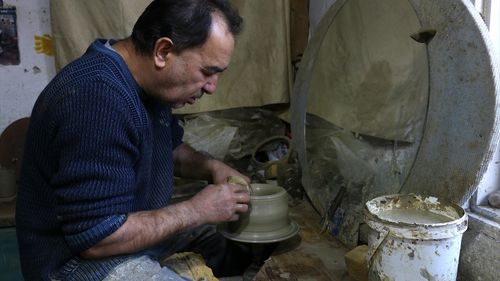 Kosova'nın Yakova şehrindeki çömlek ustası Luan Çukani, 53 yıllık yaşam deneyimiyle aile geleneğini sürdürmekte.